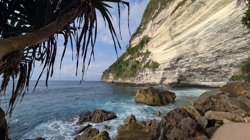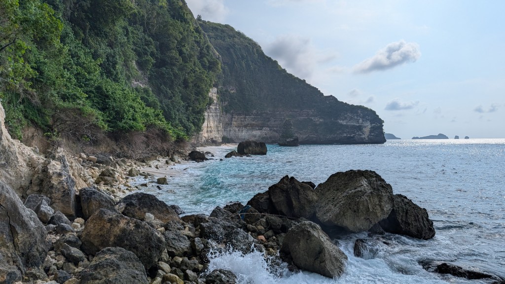 Après un vol plus long que prévu entre Montréal et Bali, suivi d’un trajet en bateau, nous voilà échoués sur la petite île de Nusa Penida.