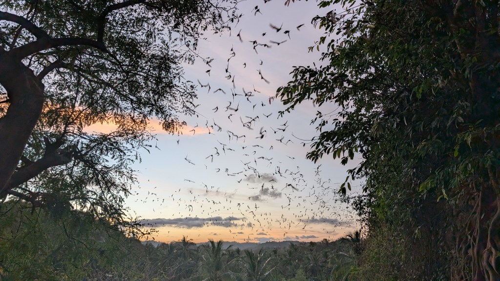 La route entre le Mont Rinjani (Mathis vous en parlera plus en détail dans un autre article) et le sud de l’île nous a fait faire mille virages au détour desquels on a trouvé : des rizières immenses, des barquettes de fraises, et surtout, beaucoup de macaques occupés à s’épouiller, ou simplement à regarder les scooters passer. Puis nous avons posé nos bagages pour quelques jours chez Jasur et sa femme à Mawun Farm, entre Kuta et Selong Belanak. Venu d’Azerbaidjan, il a construit son petit coin de paradis, cultivant fraises, tomates, fruits et plantes médicinales, élevant chèvres, poules et chatons. Un endroit parfait pour ralentir le rythme, vivre au jour le jour. Entre un curry à Warung Abangan sur la Pantai Lancing (warung = shop ; Pantai = plage), une leçon de surf pour Mathis et la visite d’une grotte de chauves souris, on a assisté à la naissance de deux chevreaux à la ferme, discuté longuement avec Pierre et Ambre, deux voyageurs reliant la France et l’Australie sans avion et pris le temps de caresser les chats.