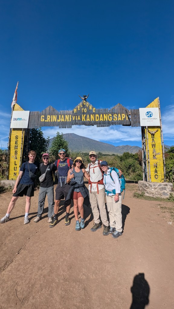 Nous remontons tous dans la camionnette et arrivons enfin au stationnement officiel du départ, Desa Sembalun à 1156m d’altitude. Plus que 2600m à faire pour atteindre le sommet! Notre périple durera 3 jours structurés comme suit :