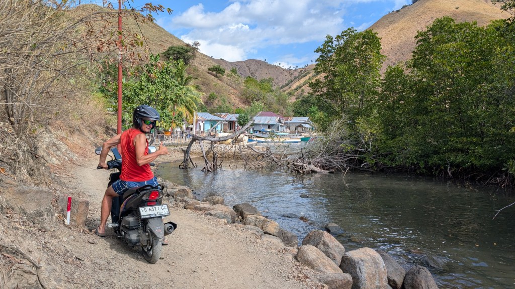 Après l’intensité des premières semaines en Indonésie, nous nous sommes installés pour une semaine à Labuan Bajo, sans programme, nos activités se dessinant au rythme de nos envies. En se levant le matin, on interrogeait GoogleMaps sur les choses à faire à proximité, et nous avons atterri dans des lieux touristiques, certes, mais aussi dans des lieux impromptus, dans des lieux où les locaux riaient de nous voir nous aventurer en scooter dans de petits chemins d’un pied de large, nous perdant parfois, pour mon plus grand bonheur. L’authentique-insolite, c’est ce que je préfère, et grâce à Mathis, qui manie maintenant le scooter comme un prolongement de son corps, on peut se faufiler presque partout!
