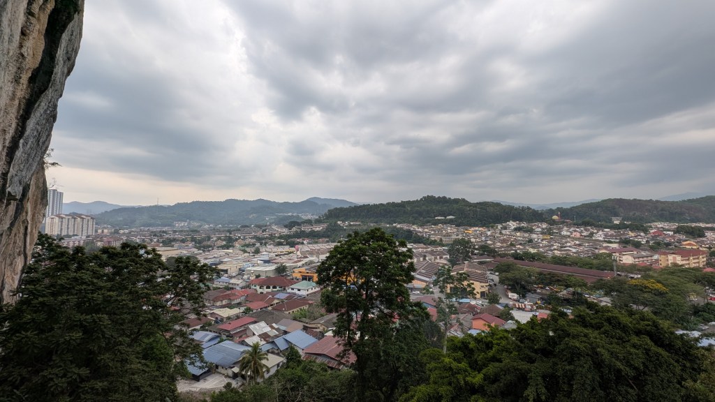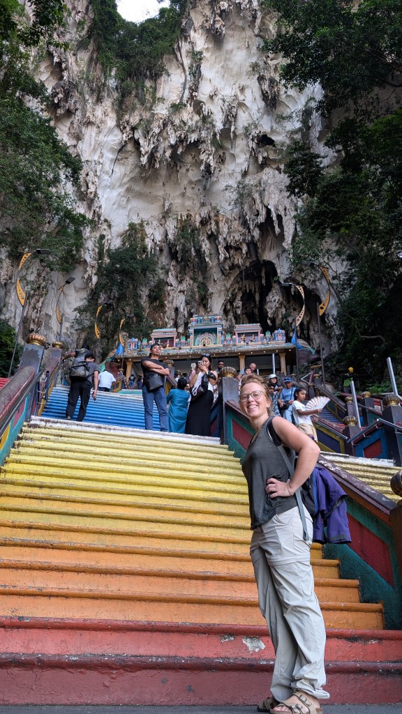 Peut-être avez-vous entendu parler des Batu Caves, ces immenses grottes à l’intérieur desquelles ont été construits des temples hindouistes qu’on rejoint en montant 242 marches multi couleurs, accueilli par une immense statue dorée de Murugan de 43m. C’est super kitsch, c’est blindé de monde, de pigeons et de macaques mais la grotte principale est vraiiiiiiiiiiiment impressionnante! Pour vous donner une idée, voici les mensurations intimes de la cavité principale : un couloir dans la grotte de 100m de long, 30m de large, 100m de haut, le tout se terminant sur un aven (genre de gouffre où l’on revoit le ciel) de 50m de diamètre et… 200m de haut!!! C’est fou!