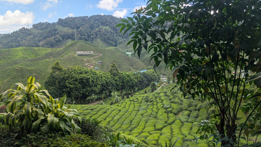 Je sais pas si on était blasés, mais les plantations de thé en Indonésie, c’était ce qu’on a vu. C’était bien plus joli et belle que ce qu’on a vu aux Cameron Highlands. Et aussi, en chemin pour aller aux Cameron Highlands, à part la route de montagne qui était vraiment très belle, et qui était intense à vivre. Mais en chemin, autour de Kuala Lumpur, c’est quand même beaucoup de forêts qui ont été complètement déforestées et qui ont été remplacées par des champs et des champs à des kilomètres à la ronde pour cultiver le palmier à huile, pour faire de l’huile de palme. Ça, ça fait un peu mal au cœur aussi, de voir ces espèces d’immenses monocultures d’huile de palme qui sont en train d’appauvrir les sols parce que ça consomme énormément d’eau.