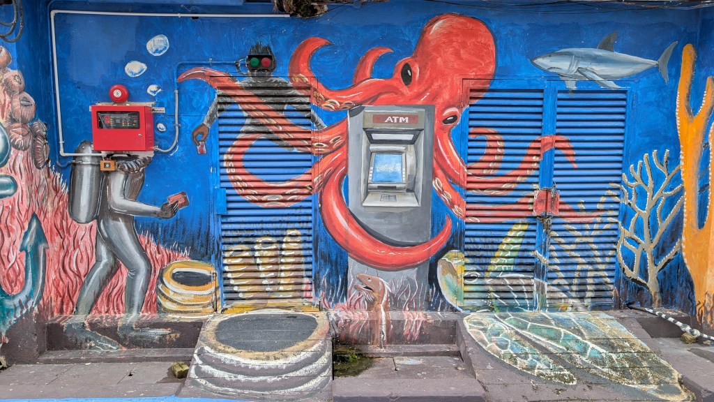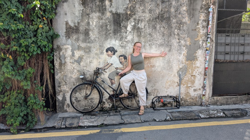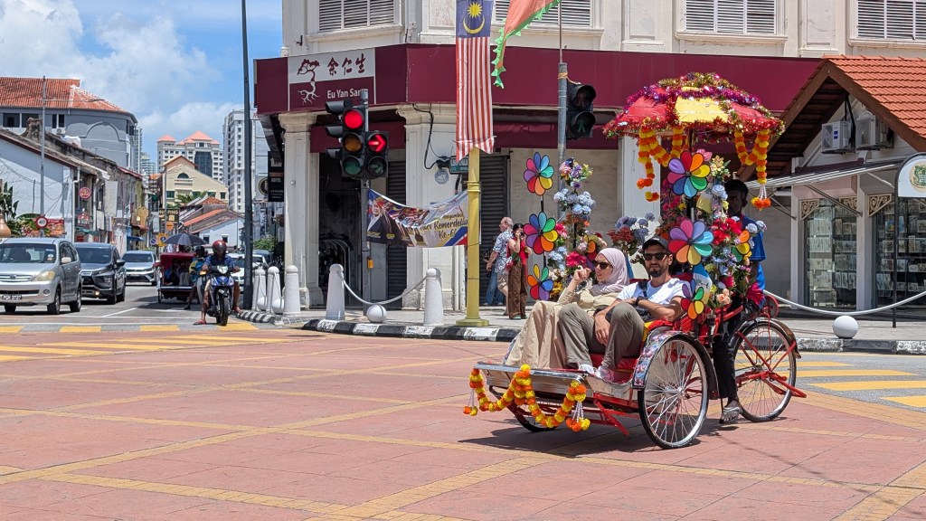 Donc on est de retour de la pause. L’averse a duré à peu près deux minutes. Ça se pourrait qu’il y en ait d’autres dès comme ça. Donc on était en train de parler de Penang et du patrimoine mondial de l’UNESCO. Je suis en train de dire que, généralement, quand il y a le sceau UNESCO dessus, il y a une réelle richesse, il y a un réel patrimoine, il y a une réelle beauté, il y a une réelle recherche architecturale, il y a un potentiel historique. Et là, en fait, à Penang, ou Georgetown, indépendamment, franchement, le street art, l’art de rue avec les graffitis sur les murs, c’était beau, mais c’était comme si c’était trop peu pour avoir le sceau patrimoine mondial de l’UNESCO.