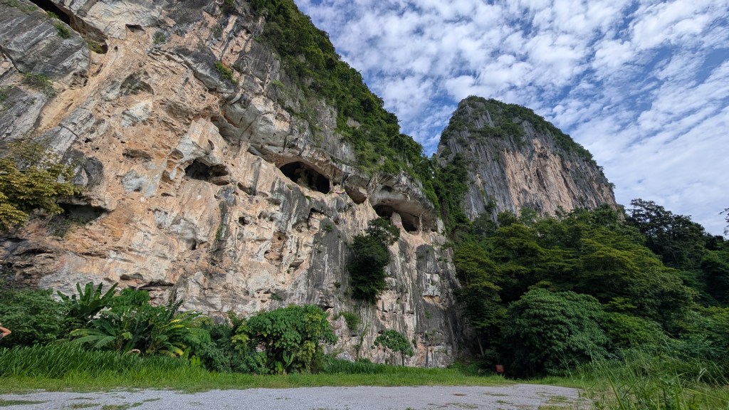 C’est-à-dire que ces deux approches sont complètement différentes et qui ont des implications complètement différentes en termes de sécurité, en termes d’installation d’équipements, etc. C’est vrai que du coup, le fait d’avoir cette possibilité-là et de vivre cette expérience-là dans un environnement qui était vraiment, pour le coup, enfin très beau. Parce que le paysage, juste au-delà de l’escalade, le paysage était vraiment magnifique. Il y a plein de petites collines, des bukits qu’ils appellent… Comment s’appelle déjà le nom ? Les collines qui sortent du sol, là ? Ah, les mogotes ? Les mogotes, c’est ça. Ça fait que ça donne vraiment un charme assez spécial à l’endroit. Et tout ça, ça a fait que moi, personnellement, je me suis senti un peu comme revivre à Perlis. Je me suis senti… OK, enfin quelque chose qui vaut la peine, qui vaut vraiment la peine en Malaisie. Oui, et puis tu as dit aussi que tu t’étais sentie comme à la maison. Je suis assez d’accord avec toi. On se levait le matin, on faisait chauffer l’eau pour le café, on pouvait aller manger juste à côté, vraiment la porte à côté, ils servaient des petits-déj. Il y avait un endroit juste à côté aussi où ils servaient des soupers. La lessive, la machine à laver, elle était à 2 minutes à pied. Donc ça, c’était aussi… C’est ça, on se sentait vraiment comme à la maison. On a été manger avec la sœur d’Amirul deux fois, juste à côté.