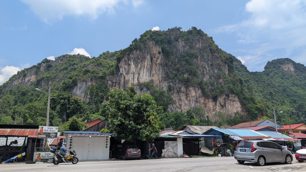 Ce crag est super facile d’accès, il suffit d’à peine quelques minutes de marche depuis la route pour y accéder. Le mur est impressionnant et quand même déversant, donc plutôt pour des grimpeurs de niveau intermédiaire minimum. Autant dire qu’après une voie de deux longueurs de niveaux 5.9+ et 5.10b (5b-c et 6a+ pour les français), j’étais au bout de ma vie! La chaleur humide suffocante, la météo très incertaine, les moustiques en grand nombre et l’absence d’énergie dans nos corps ont eu raison de nous. Nous avons donc quitté Kuala Lumpur après cette première semaine les harnais et notre motivation au fond de nos sacs.