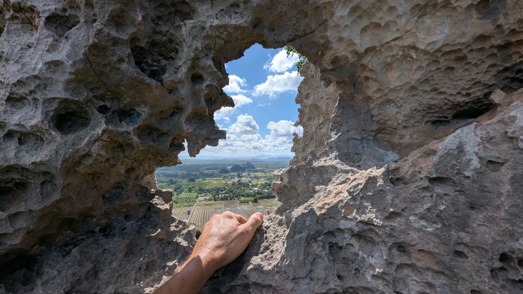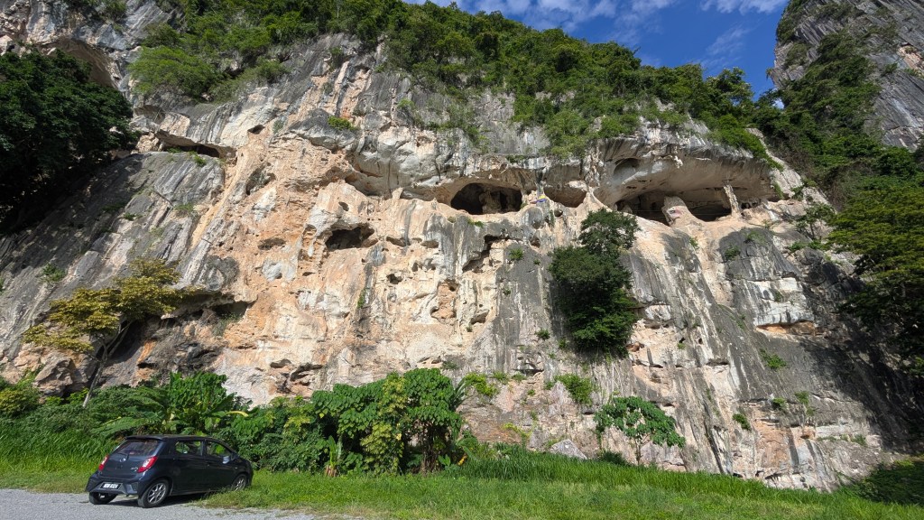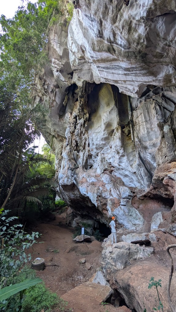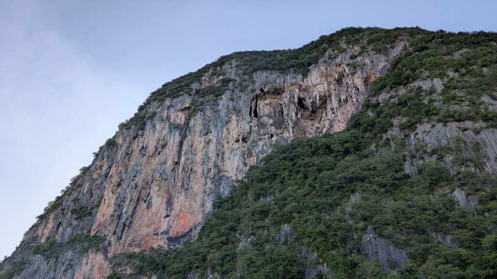 Les parois de la région sont de sacrés mogothes de calcaire vieux de plus de 200 millions d’années! Les cavités et les grottes qui les composent sont aussi impressionnantes qu’excitantes. Chaque Bukit (mogothe ou colline) recèle de secrets que les locaux et scientifiques découvrent encore aujourd’hui! Des espèces rares de plantes, de champignons et d’animaux sont étudiées, de vieux fossiles et restes humains chamboulent l’histoire de toute la Malaisie, et de vieilles échelles en bois construites et maintenues on ne sait comment à flanc de certaines falaises révèlent que la collecte du guano (fiantes de chauve-souris) remonte aussi loin que le 19ème siècle, voir plus loin encore. C’est incroyable de voir ces échelles rudimentaires sur des parois de 300m et de penser qu’ils montaient et installaient ça sans le matériel de sécurité que l’on connaît en escalade aujourd’hui.