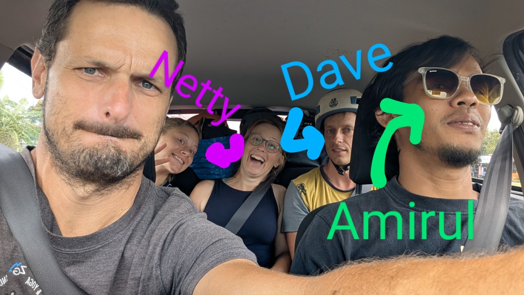 Durant notre séjour chez Amirul, nous avons aussi pu nous rendre compte que chez lui c’est une vraie auberge espagnole! Des grimpeurs et grimpeuses locaux et étrangers viennent y séjourner dans le partage et la bonne humeur. C’est ainsi que nous avons rencontré Amir, un collègue et ami d’Amirul très gentil et attentionné puis un couple formidable d’Anglais, Netty et Dave, les « Climbing Backpackers » pour les intimes. Ces deux grimpeurs chevronnés voyagent depuis plus de deux ans en Asie du sud-est avec un mini budget de 50$CAD (35 euros) par jour… Soit moitié moins que nous! Ils sont crinqués et nous nous sommes tout de suite bien entendu! Nous avons aussi fait la connaissance de Mukri et de Farnih, deux Malaisiens discrets mais récemment devenus accros à l’escalade. Nous avons ainsi pu apprécier de nombreux moments avec tous ces êtres humains où la bonne humeur et les rires étaient toujours au rendez-vous.
