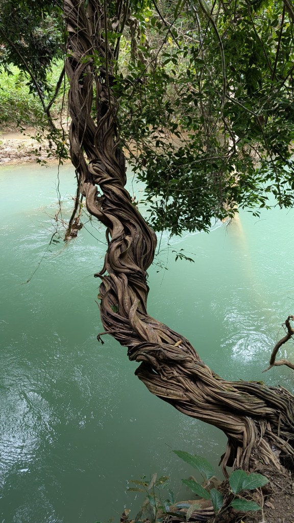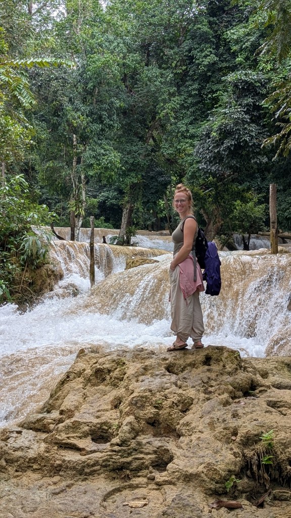 Je commence cet article en plein milieu de la jungle laotienne, au bord d’une cascade qui forme des bassins naturels d’eau turquoise. Plus tard, j’irai me renseigner sur cette formation époustouflante. C’est une journée sur le thème de la contemplation, à l’image de notre début de séjour au Laos. Mathis est allé se baigner, je le vois euphorique au loin, profitant d’un massage de mère nature. Tremper les orteils me suffit, l’eau est froide et on a retrouvé des températures en dessous des 30⁰C.