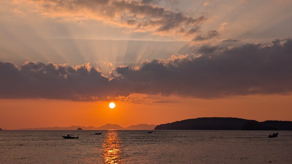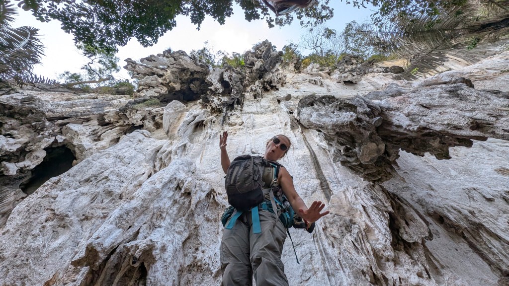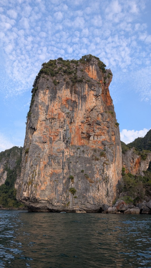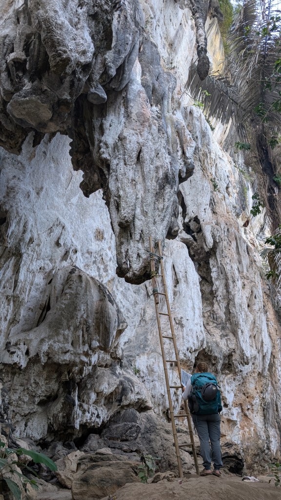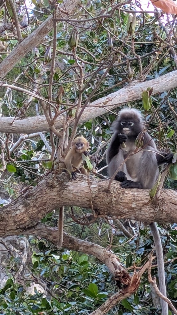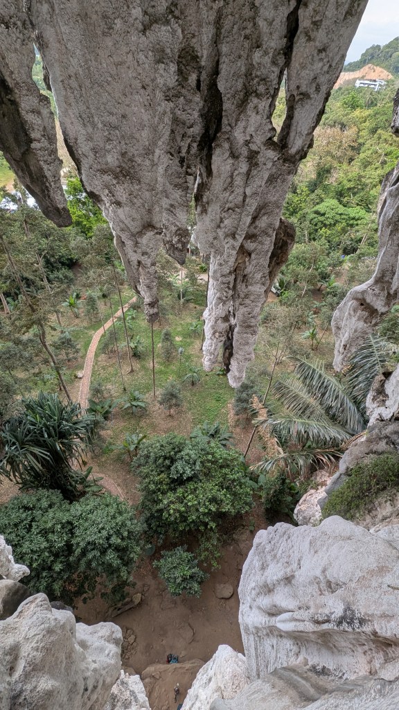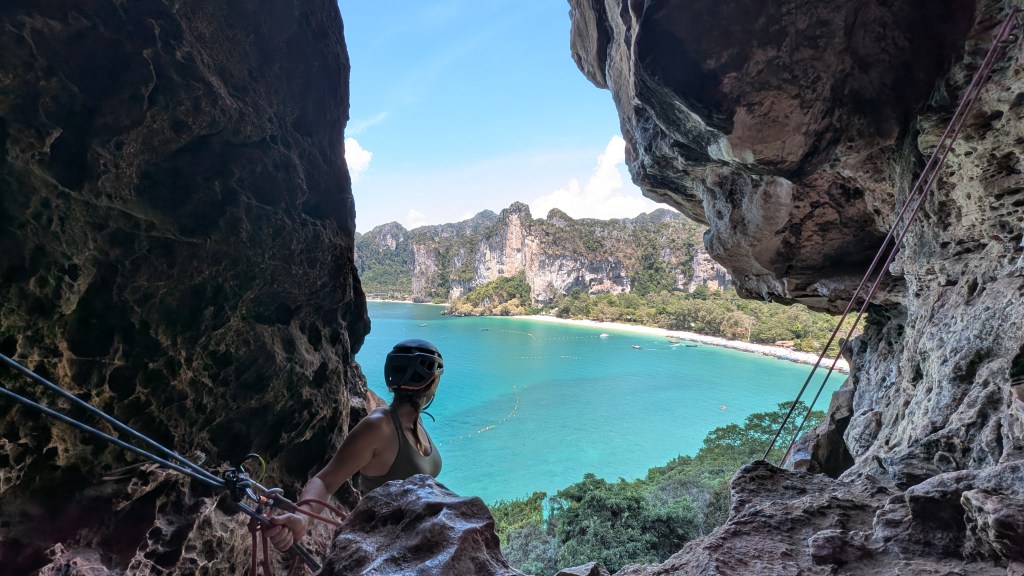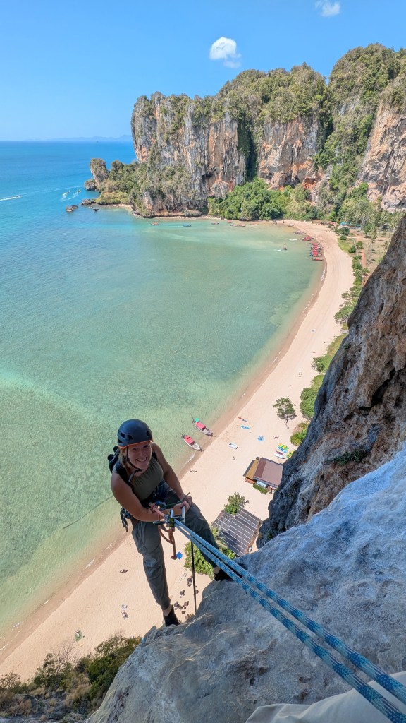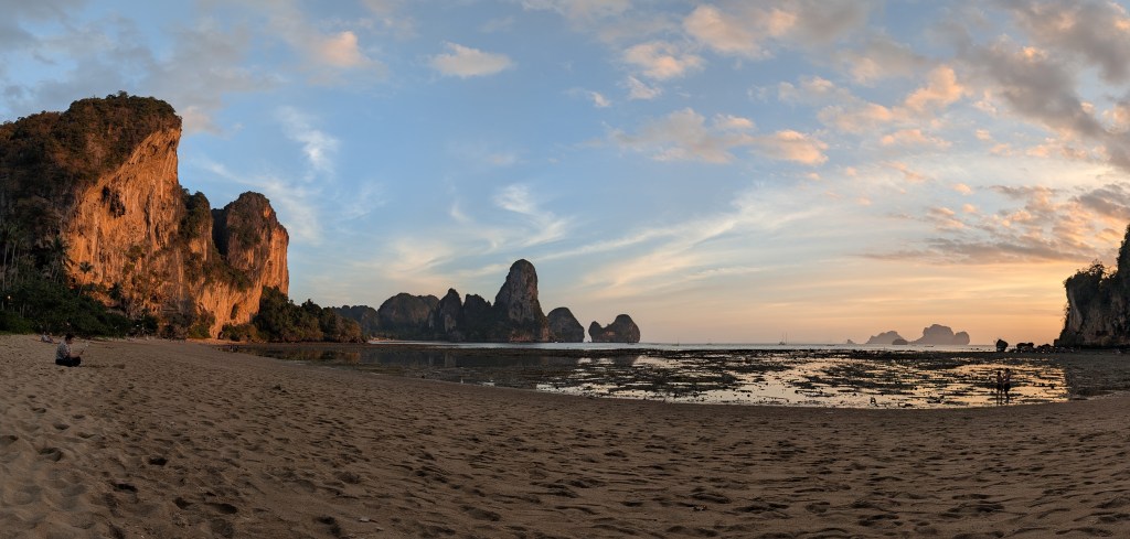 Peu connu pour ses gibbons, et on en est très contents, ce petit coin de paradis a une renommée internationale dans le monde des grimpeurs. S’il est une destination où amener sa corde et ses souliers en Asie du sud-est, c’est ici. Imaginez un site d’environ 700 voies sur des falaises de calcaire de plusieurs centaines de mètres au dessus de la mer, où on peut grimper à l’ombre toute la journée par 30⁰C, au gré des marées, puis aller siroter un cocktail sur la plage au coucher du soleil en jasant escalade sur fond de musique reggae.