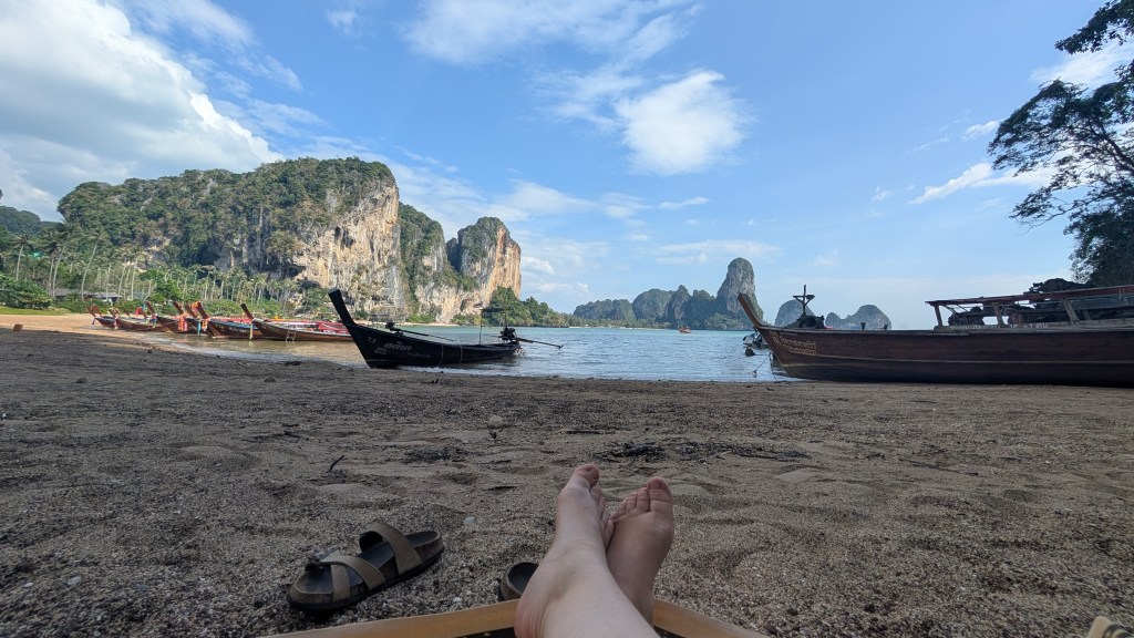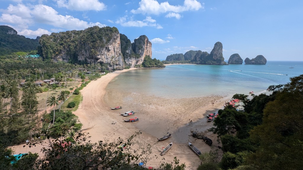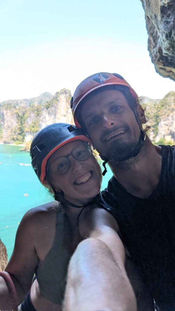 En projetant notre voyage, plan C, on en a rêvé aussi. Et puis après plusieurs mois à visiter des sites d’escalade, on a quand même hésité : encore un lieu très touristique dont la roche a la mauvaise réputation d’être très polie. Car la région de Krabi n’est pas uniquement sur la bucket list des grimpeurs, elle est aussi une destination privilégiée pour les touristes en mal de chaleur et de soleil à la recherche de petites iles paradisiaques et exotiques dont les populaires Koh Lanta, Koh Phi Phi et Koh Lipe. C’est pas toujours évident de jongler entre sa curiosité, l’envie de découvrir cet endroit dont tout le monde parle, et celle de ne pas participer au tourisme de masse où les locaux sont effacés de leur propre territoire et où l’ambiance est très occidentalisée. Mais après le Vietnam, on a choisi d’aller s’en faire notre propre idée. En fait, cette destination est pleine de ramifications qui relient plusieurs moments du voyage, et nous fait de belles histoires à raconter.